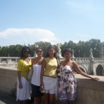 We made it to the train station and back to Roma. Seems like we went from one questionable situation to another. The hotel was in a remote area of town and we had to walk under freeways and back streets to get there. I dare not mention the things we saw along the way. Here, we added Nicole, a model from Milan to our team. So now, we were BOOM-BOOM-POW plus One!! She was full of energy and being fluent in Italian was our “tour guide” for the must see sites of Rome.