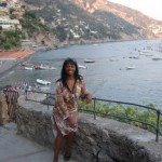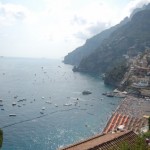 Once again we were en route and on the go. We went from Roma to Positano via the trains — some with no air and it was hotter than Houston!! Finally making it to Positano and settling into our beautiful cliffside hotel, we couldn’t wait to explore the island and get some food. As we walked along the way to the boardwalk to the beach area, there were many boutiques for our shopping pleasure. I managed to keep my spending to only food and essentials. The Euro was still pounding at the USD, making things pretty expensive from our perspective. Okay – I did buy a cute swimsuit coverup that I couldn’t resist.